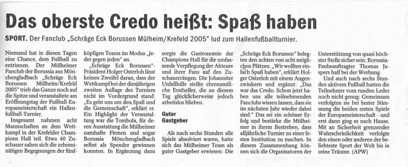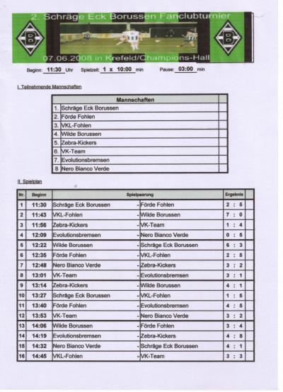Es hat uns allen von den Schräge Eck Borussen einen riesiegen Spaß gemacht eure Gastgeber zu sein und wir würden uns freuen, wenn ihr nächstes Jahr 2009 beim 3.Schräge Eck Borussen Turnier auch wieder dabei seid.
